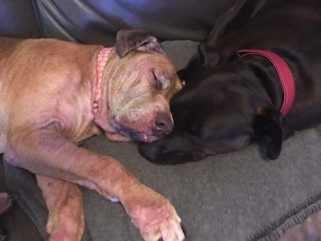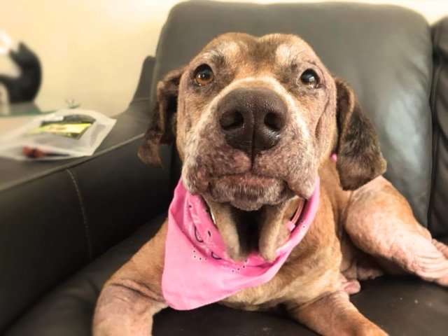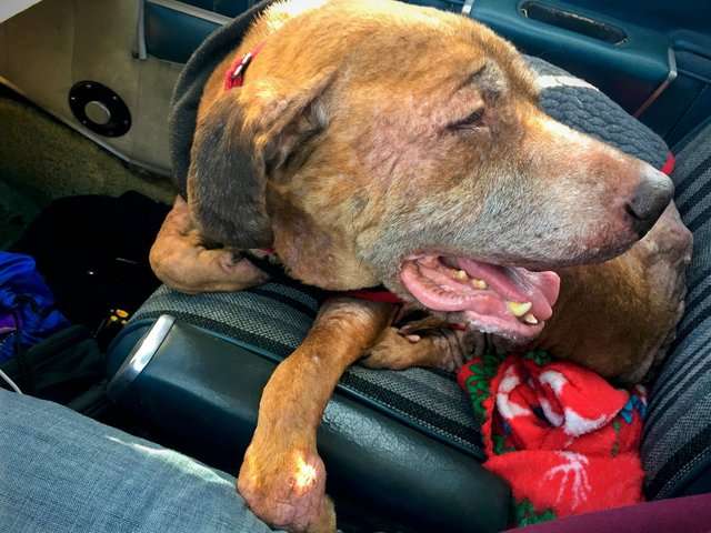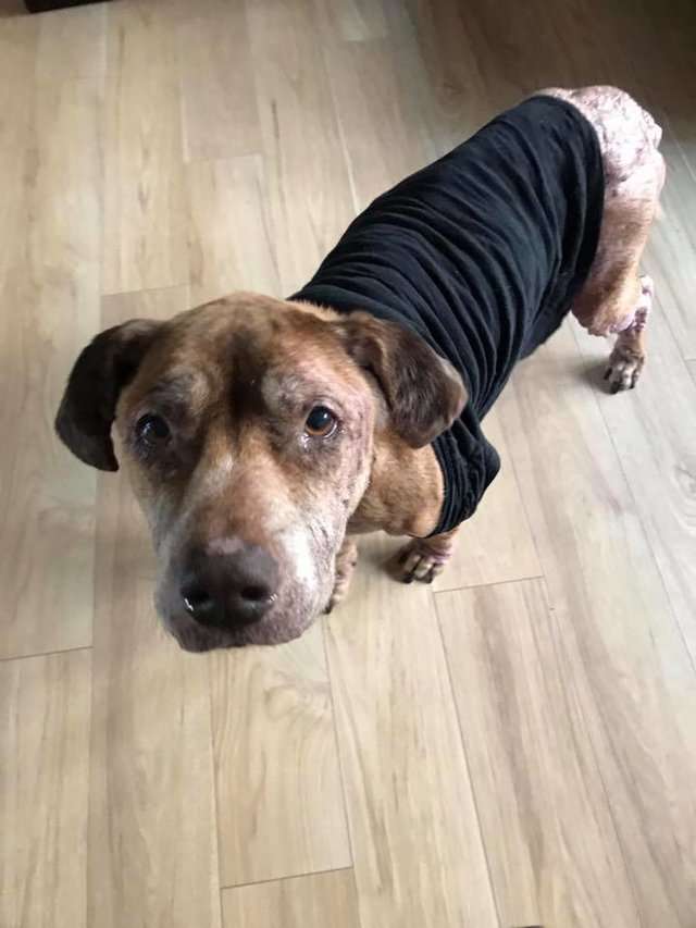 2018年04月07日美國北卡羅萊納州的動物收容所裡,有一隻叫Ashlyn的狗狗。牠的情況很不好,體重下降,皮膚下還有惡性腫瘤。不久前,動物救助組織「New England Humane Society」(NEHS)知道了Ashlyn的情況,決定把牠接過去,讓牠在生命的最後一段時間過得舒服一些。