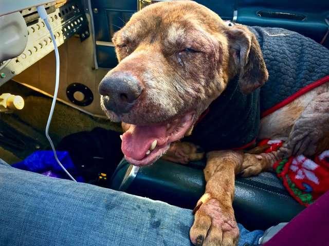 ▼Ashlyn的病情很嚴重,長途旅行對牠來說是一種折磨。動物救援組織「Flying Fur Animal Rescue」(FFAR)的創始人Paul Steklenski伸出援手,用飛機將Ashlyn送到目的地。