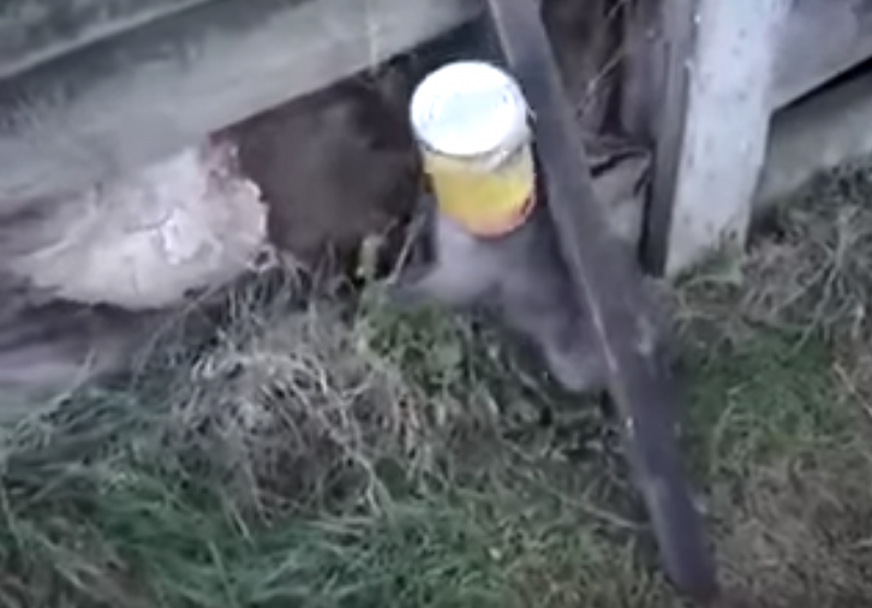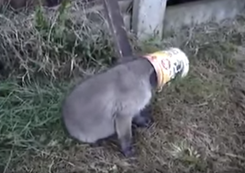 ▼不幸的是,因為貪吃把頭卡在了罐子中。