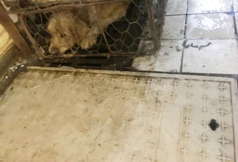 2018年04月11日去年12月21日,大陸湘南學院一名大四生安浩志,來到城區羅家井屠宰市場購買食材,經過一家攤位,發現有一條被關在籠子的黃金獵犬,在向他「求救」,當時看到這眼神讓安浩志心神不寧。