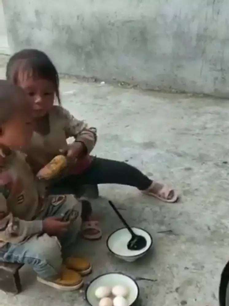 ▼姐姐用稚嫩的小手給弟弟喂玉米,眼神中是滿滿的關愛: