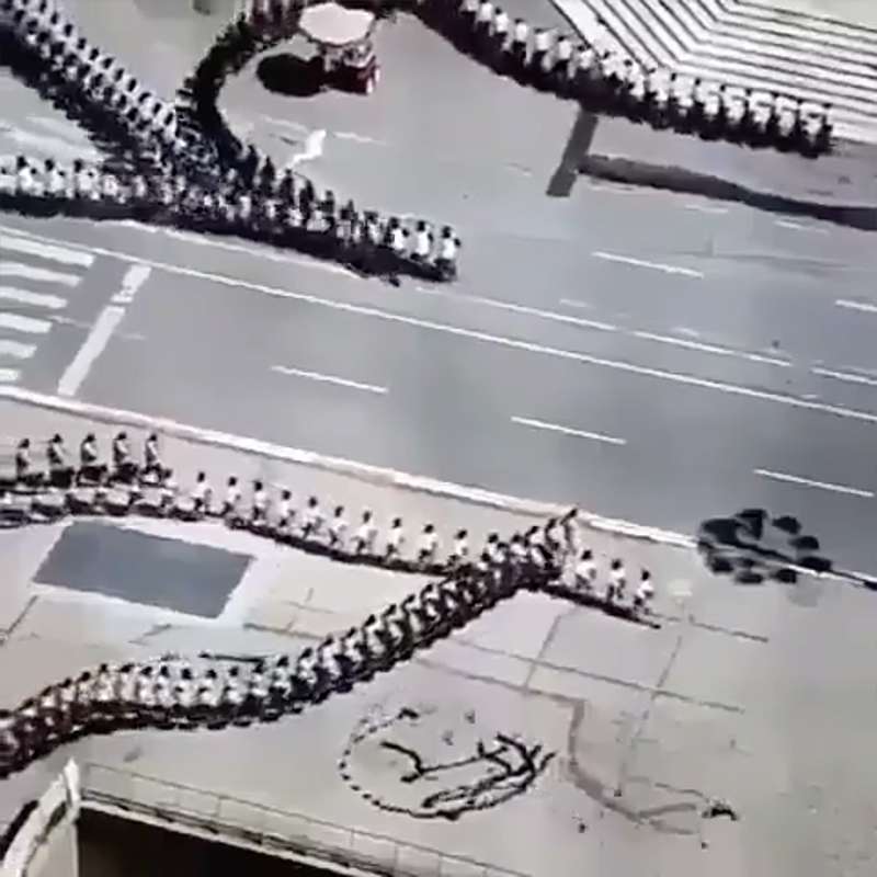 蜈蚣大軍? 網路瘋傳一群人排隊走路卻像是「穿透過去」 整個感覺毛毛的