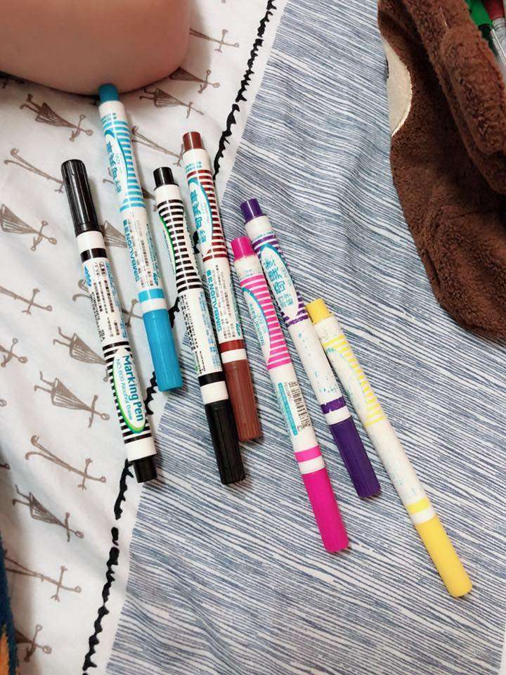 ▼原PO表示:「男友顧打遊戲不理我,於是我…」只見她跪坐在男友身上,拿出7色的奇異筆幫刺青上色。