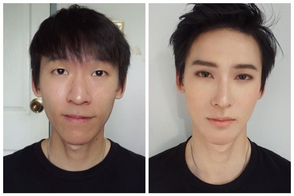 化妝之後完全變身花美男,就連氣質都不一樣了。化妝成這樣出門追女神,應該很容易就能擺脫單身吧。