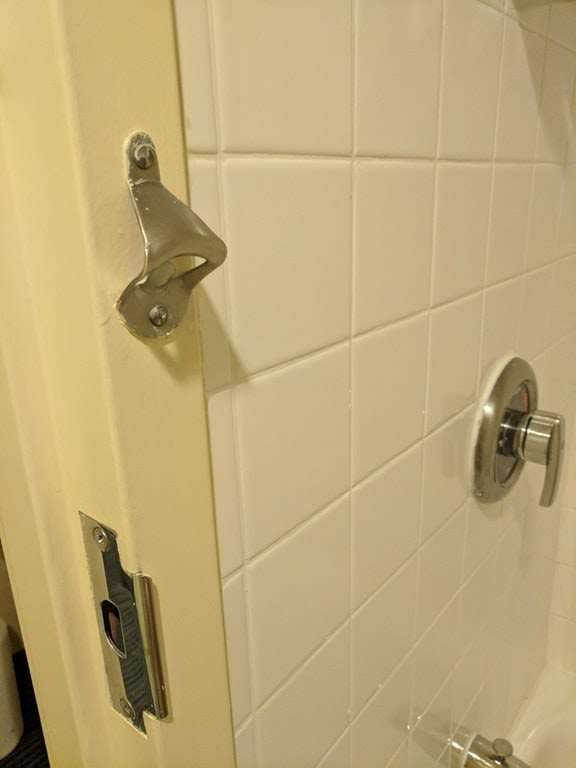 ▼泡澡時想喝啤酒的話,就用廁所中的開瓶器開瓶蓋吧。