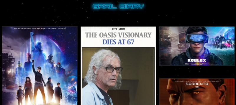 2017年12 月10日,《一級玩家》曾發布首部預告片,片中1分10秒處,其實隱藏另一個二維碼。掃入後會進入一個網頁,裡面紀錄創造者詹姆斯·哈利迪的文章,文章的作者 Stef Steinbrenner 是 1985 年電影《七寶奇謀》中的一個角色,這個電影也有同名的遊戲,MSX 版和 FC 版由科樂美移植。