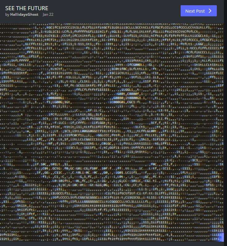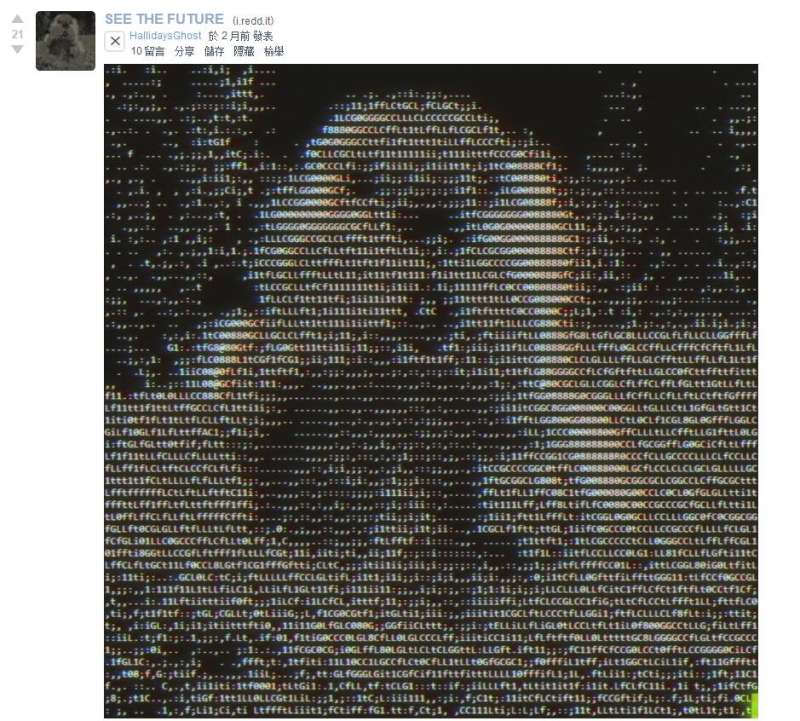 像是一支在Reddit上的帳號「哈利迪的鬼魂」發布一張哈利迪照片,照片旁邊也有一組二進制程式碼