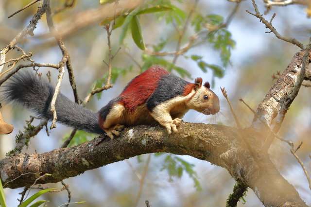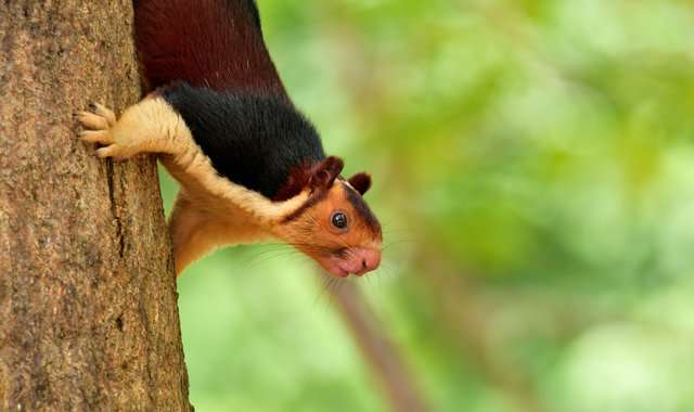 ▼這種松鼠其實叫馬拉巴巨松鼠(Malabar giant squirrel),因為生長在印度,所以常見的稱呼是「印度巨松鼠」。除了巨大的體型之外,牠們的毛皮也非常有特色。