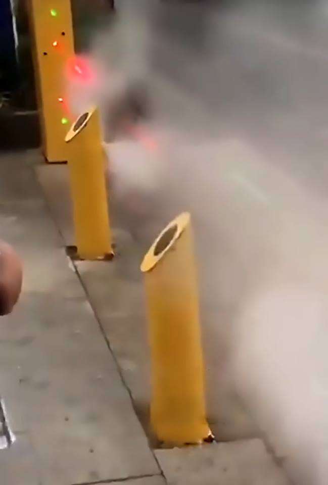 中國「防闖紅燈神器」94狂 路人敢越過安全線就會被水噴回去