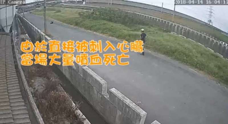 黑狗死在草皮上… 監視器拍到機車兄弟「長叉捅心臟」 狂逃6秒慘死