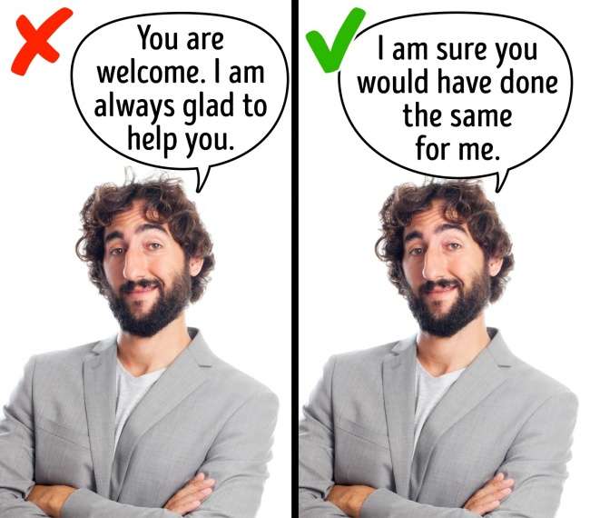 ▼4.不要總是說「不客氣」:別人感謝你時,不要說「不客氣」,你可以說「換成是你的話,你也會為我做這些」。這樣說能夠產生一種互惠的感覺,讓對方產生要為你做點什麽的衝動。