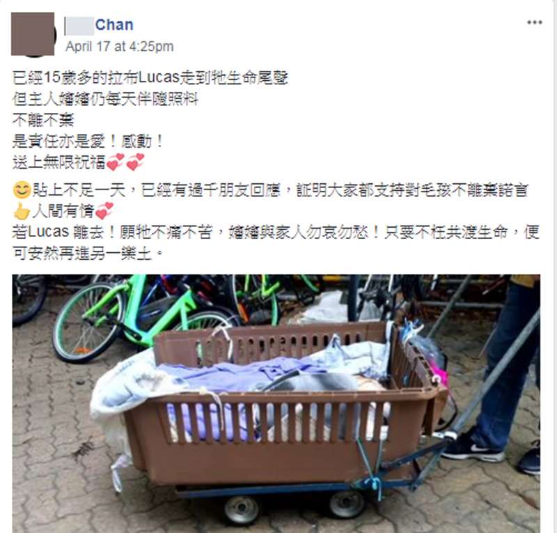 ▼「不離不棄,是責任亦是愛!感動!」陳先生當下也上前和狗主人說:「養寵物就要養到老,牠幸運地遇上好主人。」他祝福狗狗之後能毫無痛苦地前往另外一個世界,也希望這位主人與家人別為此哀愁。
