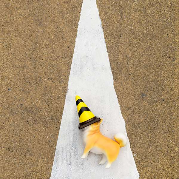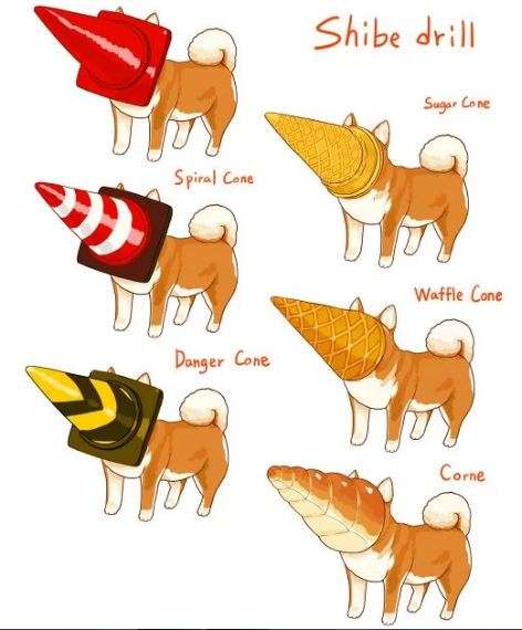 ▼柴柴頭上被三角錐、甜筒、麵包捲給套頭,顯示出柴柴好玩的癡呆感。