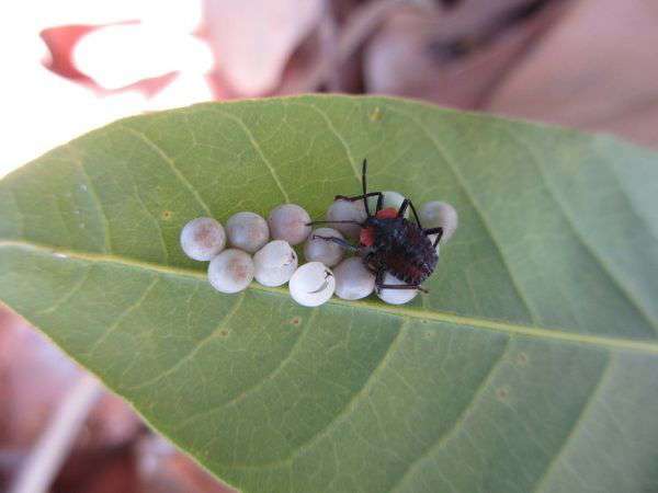 ▼醫生建議,碰到荔枝椿象千萬不要親身碰觸,可以用塑膠袋包住卵清除。如果被毒液噴濺,不可搓揉,應該用大量清水清洗,並迅速就醫。
