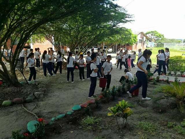 ▼哥倫比亞蒙特雷·卡薩雷的校園中,學生們常常在下課時間聚在一起玩耍,有時還會給Negro買餅乾吃。