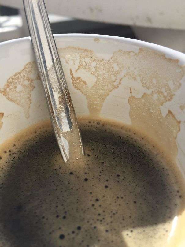 ▼​把牛奶倒入咖啡中,杯子裡出現了一隻史努比。
