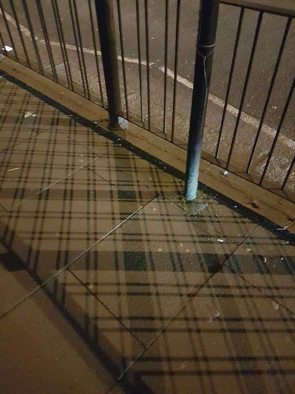 ▼​路邊欄杆的影子看起來很美也很複雜。