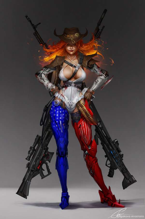 美國的戰士是個女牛仔的形象,布加科娃形容她:「有點幼稚和理想主義,但內在其實蠻狠毒的。她很有魅力和號召力,讓群眾都願意聚集在她身邊。她在追求目標方面不會考慮什麼道德或後果,她最極致的目標就是生存下去。」