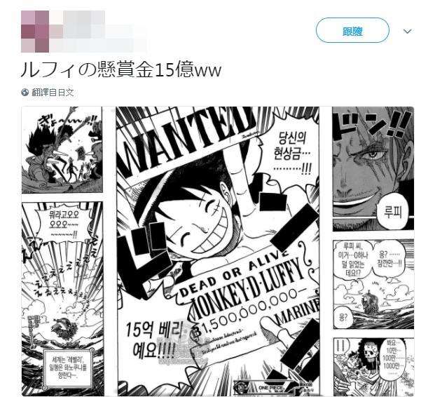 ▼這最新的《航海王》連載第903話,魯夫的懸賞金額飆升至15億,各國的翻譯版本也在網路上被瘋傳。