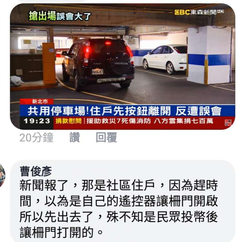 ▼不過經事後媒體報導,這個停車場原來是和社區住戶共用的,這輛白色轎車就是住戶所有,當時因為他趕時間要離開,於是用遙控器打開柵欄,沒想到剛好原po也繳付準備離開,才會發生這樣的事。