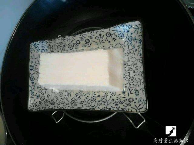 ▼隔水蒸豆腐:將豆腐裝入盤中放在蒸架上,蓋上鍋蓋蒸15分鐘,拿出來再煎就不容易碎了。