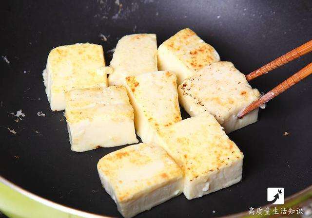 ▼慎用鍋鏟:豆腐下鍋後不要輕易推或者翻,還沒有煎好時,可以晃動鍋,防止豆腐黏在鍋底。一面煎好後,再用筷子輕輕翻動,繼續煎另一面。
