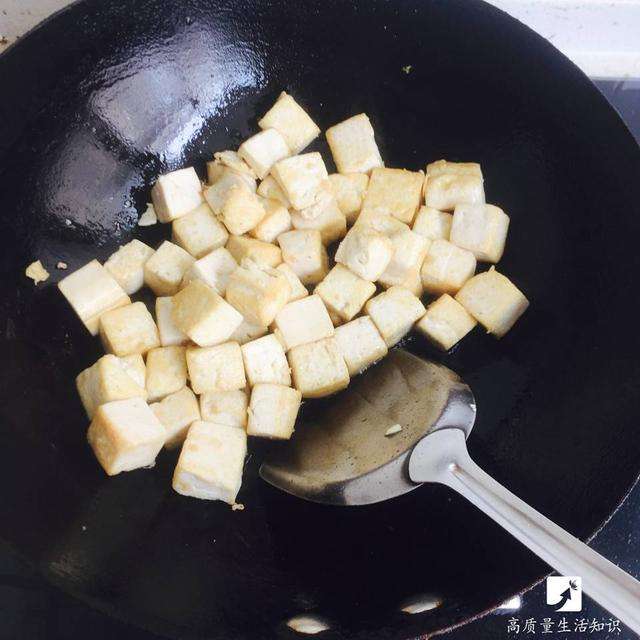 ▼鹽水浸泡:先用清水沖一下豆腐,然後放進盤子或者鍋中,倒入能夠沒過豆腐的水,並加入少許鹽;浸泡5分鐘後,取出豆腐切塊,倒入鍋中煎,或者輕微翻炒,就不會碎了。