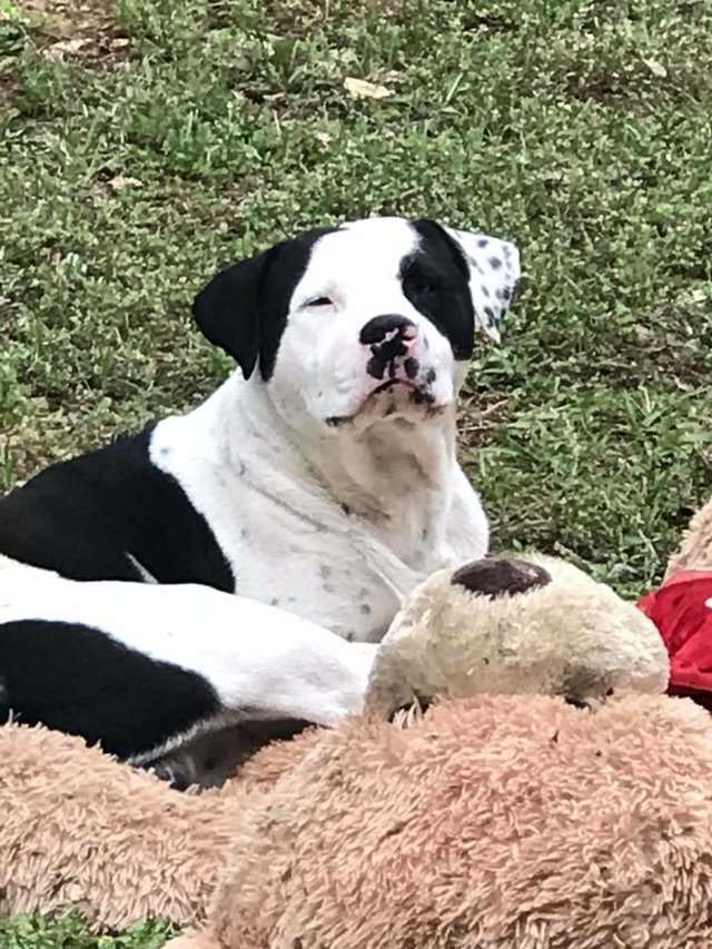 ▼St. Dizier見到狗狗就立刻愛上了牠,並給牠取名為Blue。Blue在新的家庭中生活的非常開心,牠喜歡家裡的所人,也喜歡自己新的玩具熊和貓咪夥伴。Blue常常跟著家人去公園散步,生活的很愜意。