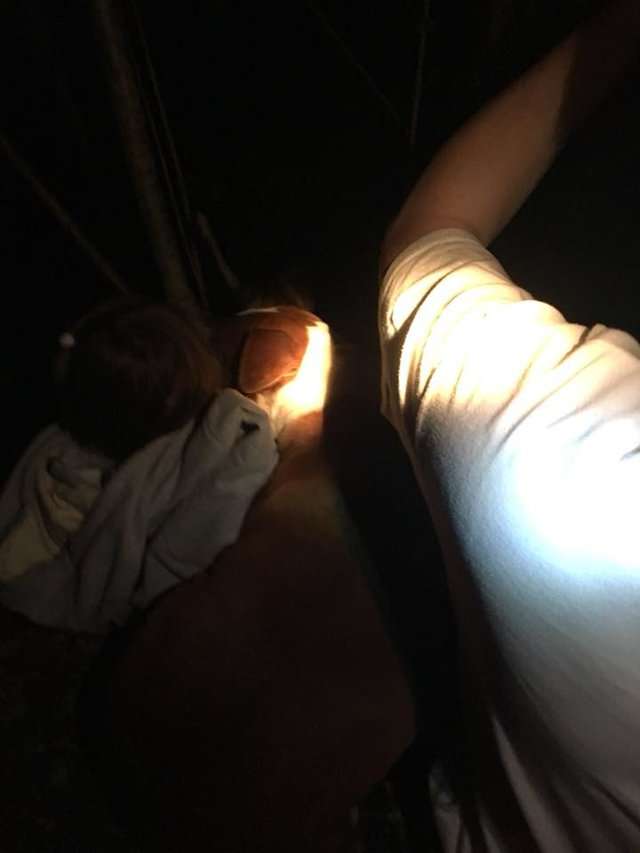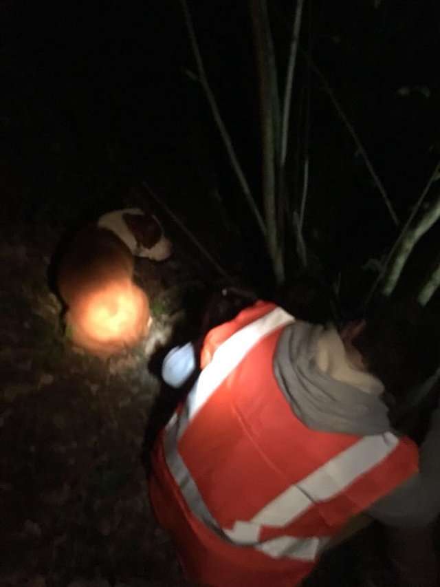 ▼後來救援人員趕到,當牠們用手電筒照向她們時竟然看到了一隻比特犬。這隻比特犬是她們的寵物,在她們走丟的9個小時內一直保護她們。