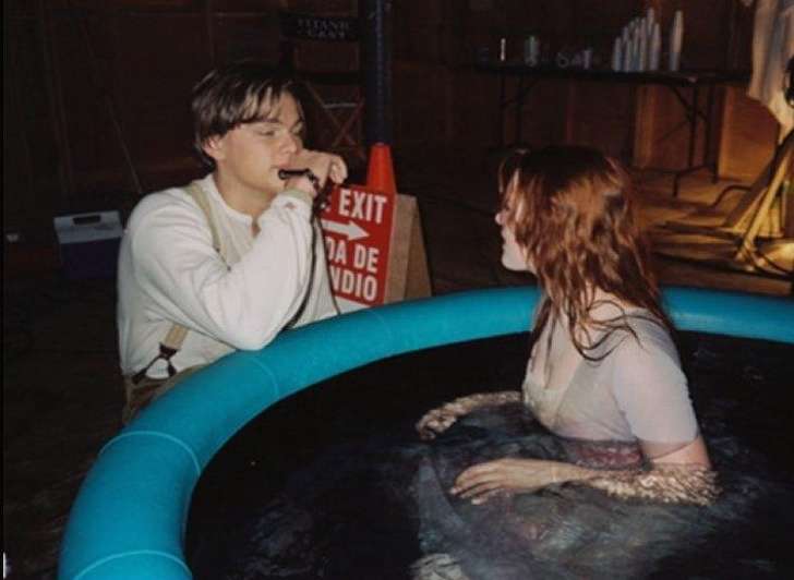 ▼加碼:拍攝《鐵達尼號》時,凱特·溫斯蕾坐在熱水池中,李奧納多·狄卡皮歐正在為她加油。