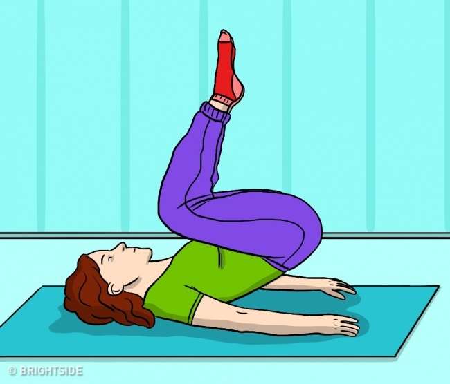 背部平躺,雙腳舉高並保持筆直。交叉雙腿,使得一邊腳踝高於另外一邊腳踝,然後換邊重做。