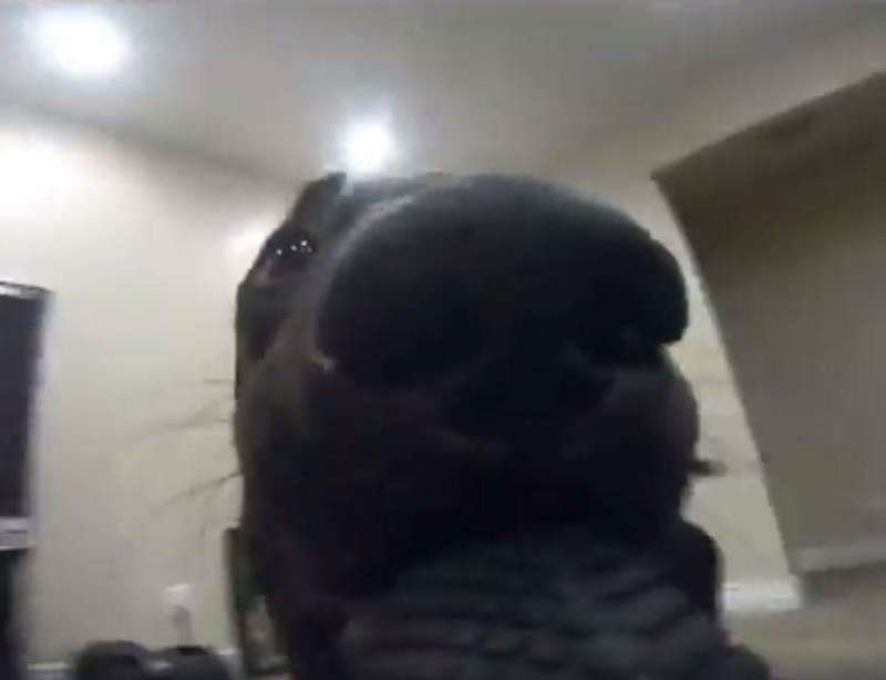 ▼原來這隻狗狗偶然發現了主人的GoPro,發現這個錄影神奇好像很有趣,於是一把叼起了自拍棒,在整間屋子內趴趴走。