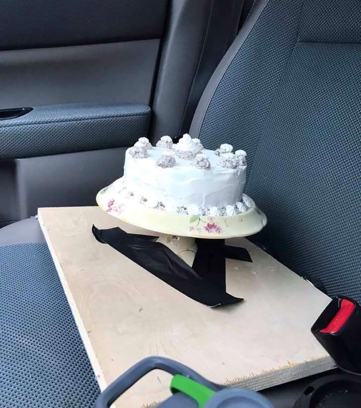 ▼高腳蛋糕不容易攜帶,可以用一塊板和膠帶將它固定住,就不怕打翻了。