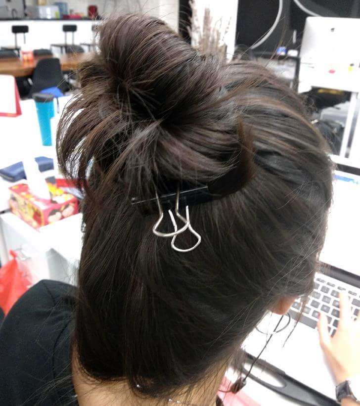 ▼沒有髮帶綁頭髮嗎?萬用長尾夾可以幫助你。