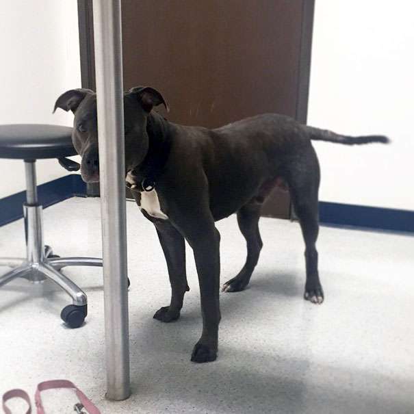 狗狗一來到獸醫診所「假裝變成雕像」 說什麼也不動求獸醫放過