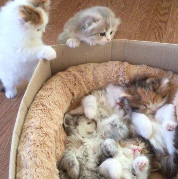 2018年05月13日毛小孩精力旺盛,最近有網友分享家中兩隻可愛的貪玩小貓,玩到太遲才回窩裡,結果兄弟姊妹都睡滿,沒有牠們的位置啦!