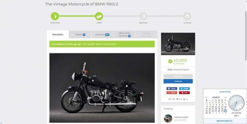 ▼LEGO ideas是樂高官方的平台,鼓勵MOCer將創作投稿,在一定的時間內如果獲得一定的票數,則可以繼續留在網路上,最終的目標是在約2年的時間內,必須募集1萬個連署支持,之後樂高就會評估是否將這個創意作品量產。阿亮在4月28日正式達成1萬個連署支持,也收到樂高官方來信,希望阿亮提供作品的細部內容。