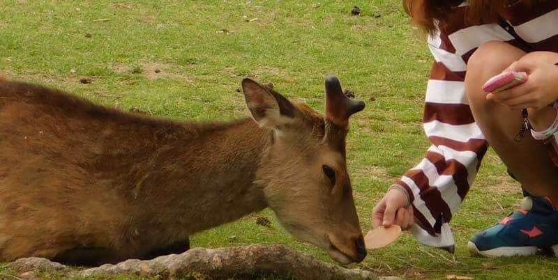 原來這些鹿鹿只是吃飽了,不是對食物失去了興趣啦!不過每天都吃一樣的食物,相信牠們也是會有點膩的,所以想要體驗被鹿群「圍繞」的情景,建議大家還是趁著鹿群還沒吃飽,早點到奈良公園餵食吧!