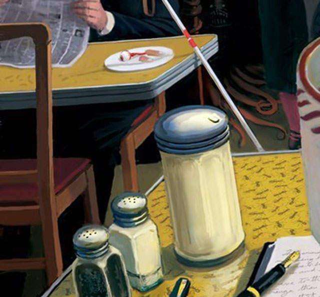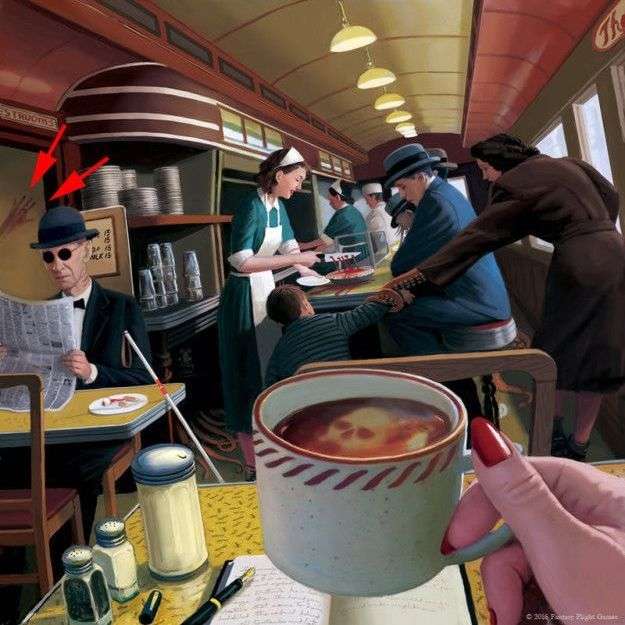 最近網路上瘋傳的《Blue Plate Special》讓網友們紛紛化身福爾摩斯,一起尋找圖畫中各種詭異的細節。這幅由插畫家Jeff Lee Johnson創作的名為《本日特餐》(Blue Plate Special)的畫乍看只是普通的餐廳供餐,但當你仔細觀察時會不斷被「恐怖感」包圍。