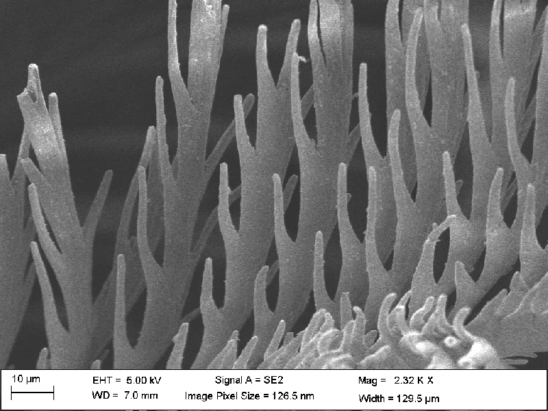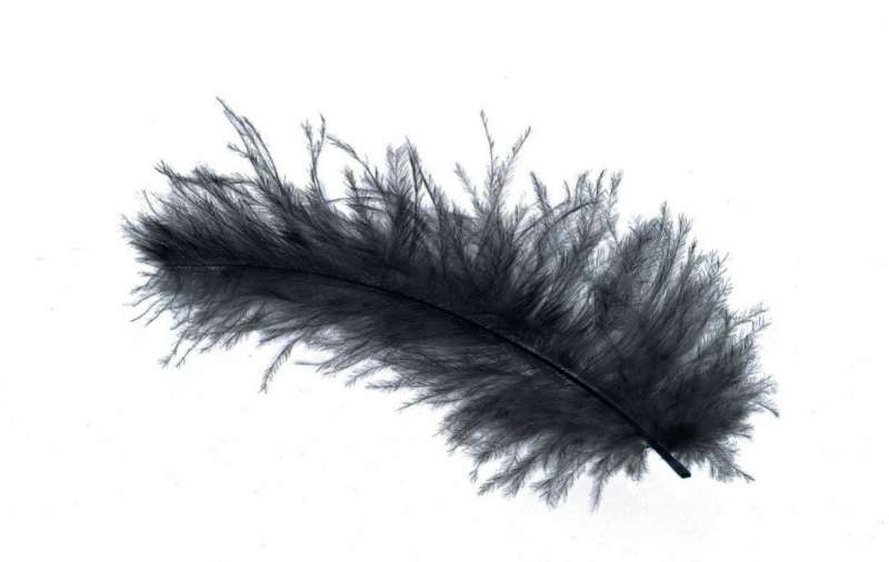 ▼與Vantablack不同,天堂鳥羽毛的表面並不平整,它擁有複雜且不規則的分支結構,在顯微鏡下看起來像是珊瑚礁或錯綜複雜的森林。光線照到羽毛上時,會不斷在細小分支形成的空洞間散射,最後全部被羽毛吸收。