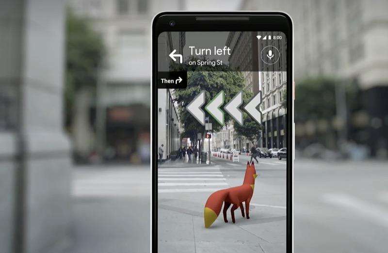 過去我們常因為不知道要左轉還右轉,不斷在原地打轉或是看錯方向,但有了AR技術後,Google 地圖可以利用手機相機,讓用戶以 AR 箭頭 + 街景的型式帶用戶前往所需地點。還增加現實感的「小狐狸」來帶路,就像手機遊戲《寶可夢》的畫面感。