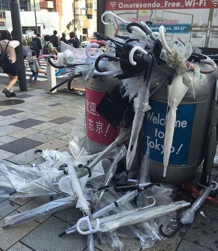 ▼拋棄式雨傘:這種雨傘在日本很受歡迎,因為價格便宜,壞掉也不會心疼。陣雨過後,日本地鐵站經常可以看到成堆的雨傘。