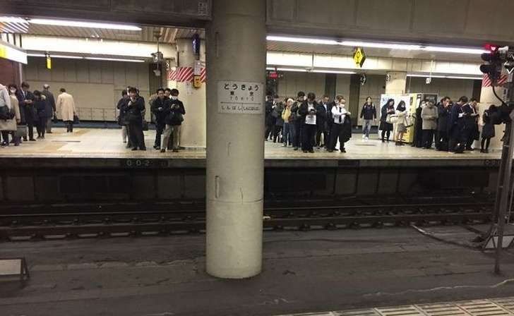 ▼民眾自覺排隊:東京地鐵站中,民眾安靜排隊等待列車進站,人與人之間的距離很近,但大家沒有擠成一團。