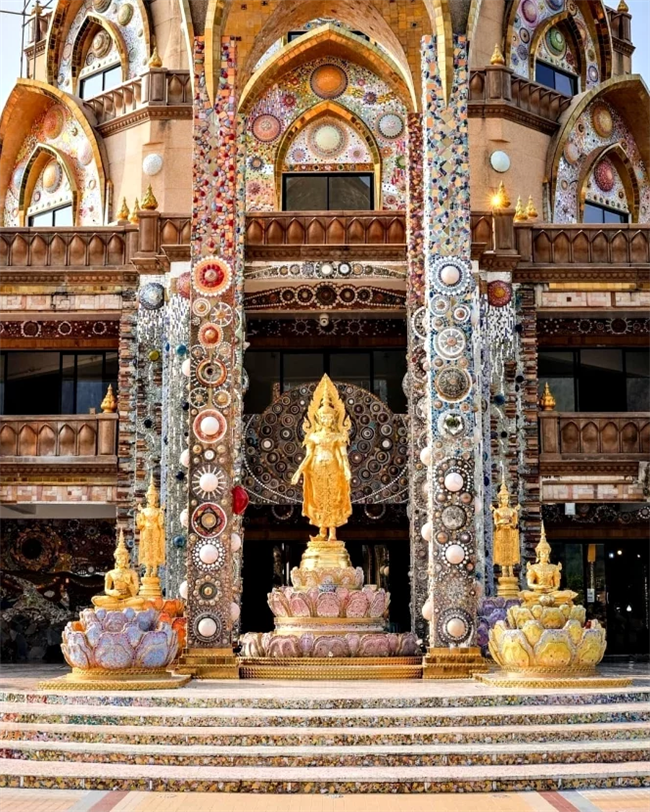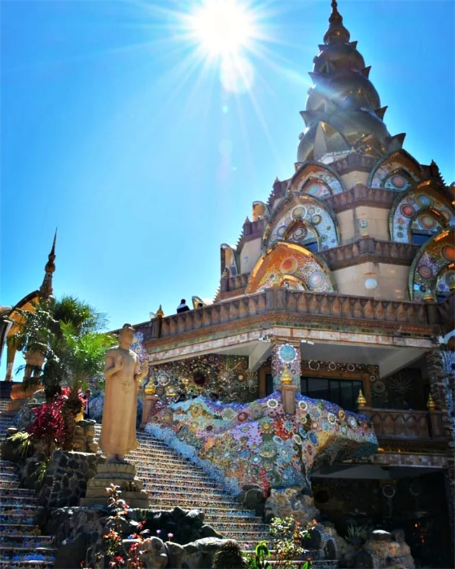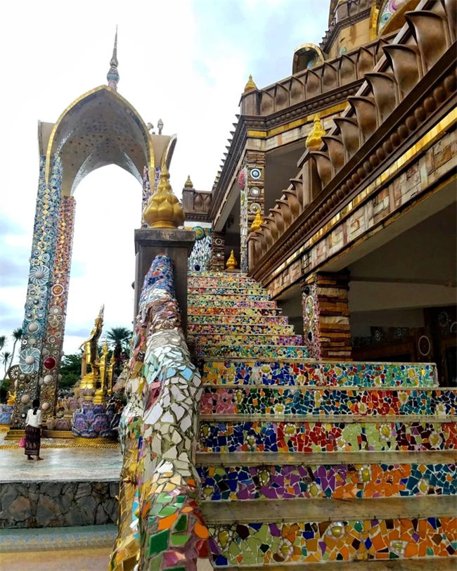 ▼帕頌橋寺(Wat Pha Sorn Kaew)泰語的意思是「懸崖上的玻璃廟宇」,所以寺廟的外觀鑲嵌了大量的精美瓷器、珠寶彩石,富麗堂皇的色彩讓人眼花繚亂。