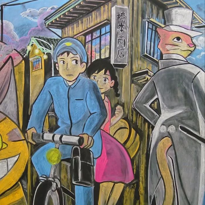 ▼他們很喜歡宮崎駿動畫,創作的粉筆畫大部分都是這樣的主題。
