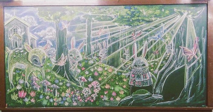 2018年05月17日教室太單調?那就想辦法裝飾一下!香港協恩中學的一些學生就決定給教室增添一點色彩,他們組成了一個名為「Illusdreamer」的創作團體,有時間就用粉筆在黑板上作畫。這些的黑板畫超精彩,同學們都很愛。