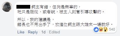 ▼不過也有網友為狗狗護航,表示狗狗只是聽從主人的指示,錯的只有飼主,只要「叫大雄和飼主打就好」。