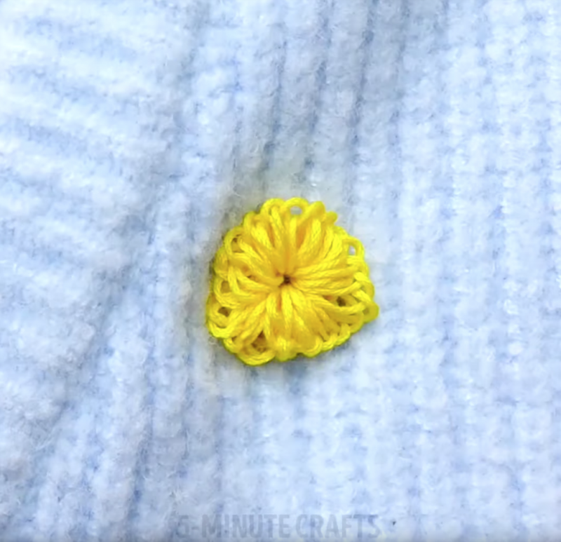 ▼有時候衣服上不小心破了一個洞,不穿或者丟掉又很可惜,這時候用針線縫一個小花,不僅能縫補洞口,還能增添衣服的美感。