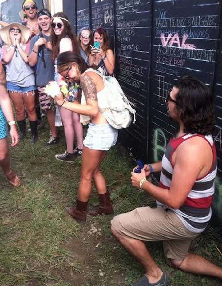 2018年05月19日一個年輕女生參加了音樂節,前往會場期間有很多陌生人不斷送花給她,令她感到很奇怪,而且送完花給她的陌生人都沒有離開,反而跟著她,人群慢慢開始聚集起來,分散了她的注意力,她回頭一看,突然發現一個單膝下跪的男人,這男人是她的男友-約翰費雷拉。