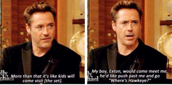▼「鋼鐵人」小勞勃道尼( Robert Downey Jr.)的兒子Exton特別喜歡「鷹眼」,甚至在片場探班時繞過父親直奔「鷹眼」。小勞勃道尼還挖苦自己的兒子不聽話時只有「鷹眼」可以說服他:「你不能把棍子往眼睛裡面戳,這樣你就不能像我一樣從很遠的地方射到敵人」。